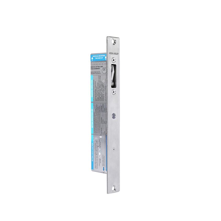 The ES8100, also known as the V-lock, contains a high torque motorised bolt which moves into a V shaped Strike Plate, pulling the door into alignment, when locked. The ES8100 may be mounted either vertically or horizontally but cannot be mounted in the floor.